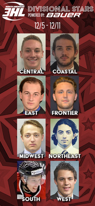 The North American 3 Hockey League (NA3HL) announced today the Divisional Stars of the Week presented by Bauer Hockey for the week ending December 11, 2016. The divisional stars of the week is an award given each week of the regular season to the top performing players in each of the eight divisions of the NA3HL as nominated by their head coaches.