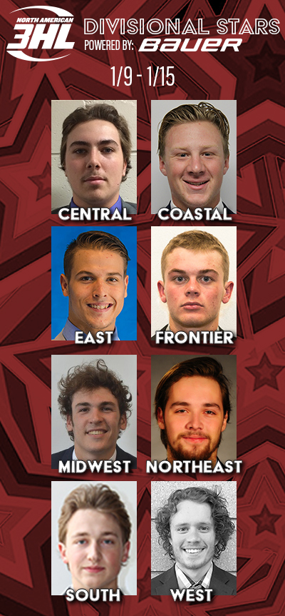 The North American 3 Hockey League (NA3HL) announced today the Divisional Stars of the Week presented by Bauer Hockey for the week ending January 15, 2017. The divisional stars of the week are awards given each week of the regular season to the top performing players in each of the eight divisions of the NA3HL as nominated by their head coaches.