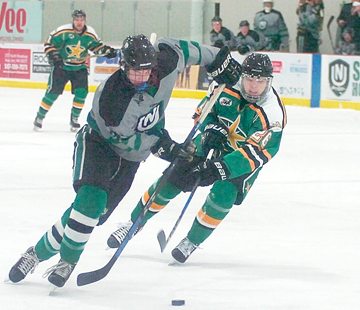 Breezy Point North Stars 3 @ New Ulm Steel 9-The New Ulm Steel grabbed an early five goal lead to defeat the Breezy Point North Stars, 9-3. Steven Mordini, Kirk Coppock, Alex Angel, Ryan Smith, Tom Reilly, Austin Langworthy (2), Sam Storlie, and Luc Krueser scored for the Steel, while Hayden Hoyt (2) and Jared Fladebo found the back of the net for the North Stars. New Ulm's Ryan Beilenberg stopped 21 shots, while Bronson Moore and Lucas Ehrlich made 26 and 1 saves, respectively, for Breezy Point.