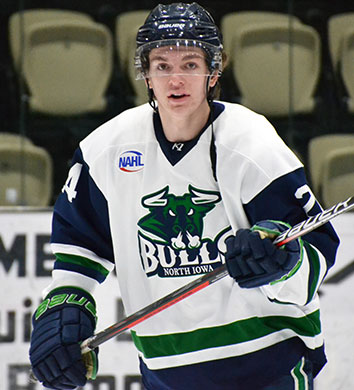 The Crystal, Minnesota native is another example of the NAHL and NA3HL’s Ladder of Development at work, joining the North Iowa roster in the NA3HL in October of 2020. He immediately became an impact player for the Bulls, scoring his first junior goal against the Willmar WarHawks in just his third shift as a Bull. He would post a point per game in 33 regular season appearances for North Iowa during the 2020-21 campaign, and came up big again in the team’s run to a Fraser Cup title that April. Of his five points in that Fraser Cup tournament, three were goals, two of which were game-winners.