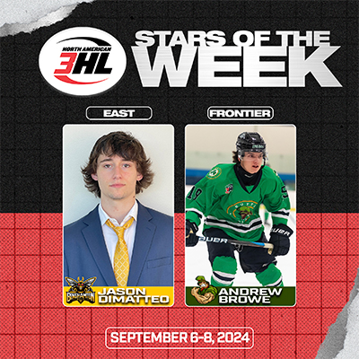 The North American 3 Hockey League (NA3HL) is pleased to announce the Divisional Stars of the Week for the week ending September 8th. The Divisional Stars of the Week is an award given each week of the regular season to the top performing players in each of the five divisions of the NA3HL as nominated by their head coaches. (Only the East and Frontier Divisions played games during opening weekend).